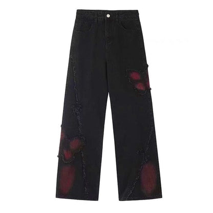 Effortlessly elevate your style with our Black and Vermilion Butterfly Jeans. Crafted in a sleek and elegant design, these jeans showcase a stunning black and vermillion butterfly pattern that will make you stand out from the crowd. Made with high-quality materials, these jeans offer both comfort and style, perfect for any occasion.