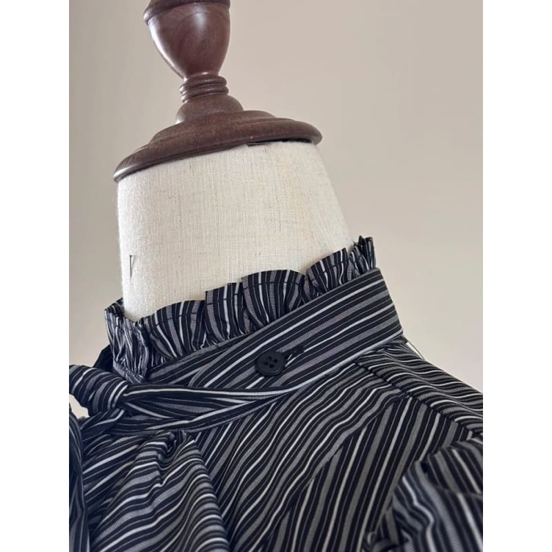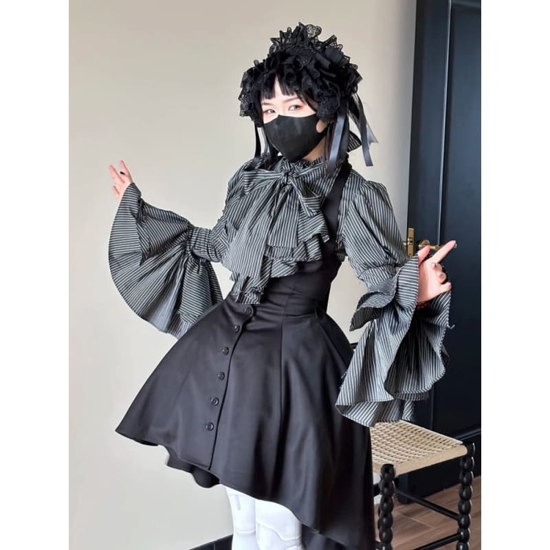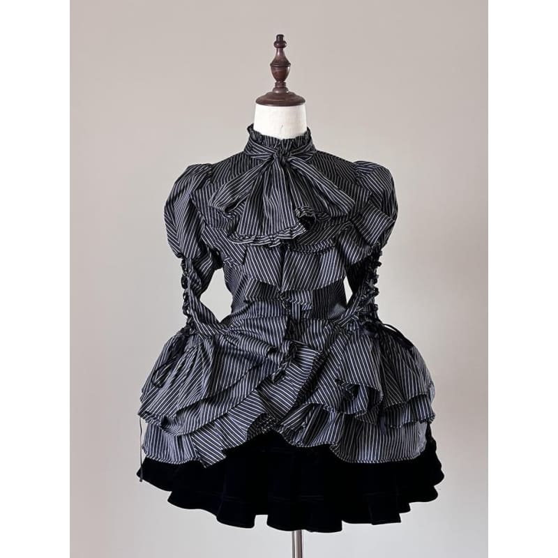 This Black Collar Lace-up Lolita Long Sleeves Striped Shirt is a must-have for any fashion-forward individual. The elegant black collar adds a touch of sophistication while the lace-up detail adds a hint of edginess. The long sleeves provide warmth and the striped pattern adds a unique touch to any outfit. Elevate your style with this versatile shirt!