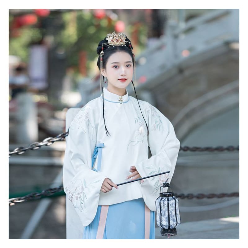 Flower Embroidered Hanfu Blouse / High Waist Maxi