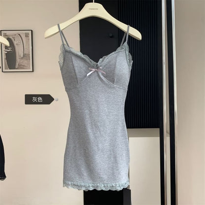 Plain Lace Trim Chemise - Gray / S