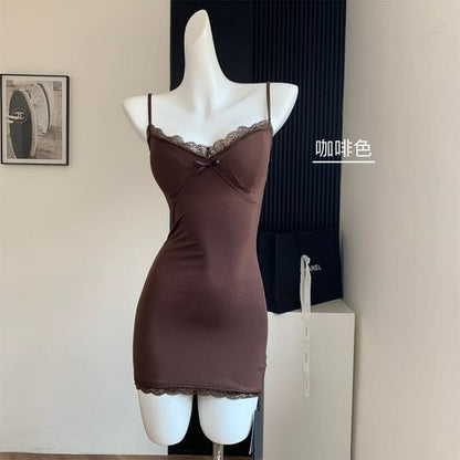 Plain Lace Trim Chemise - Coffee / S