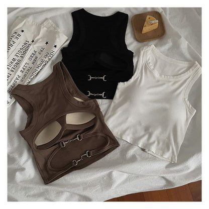 Round Neck Plain Cutout Back Padded Tank Top - White