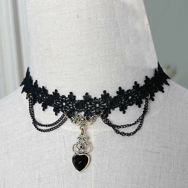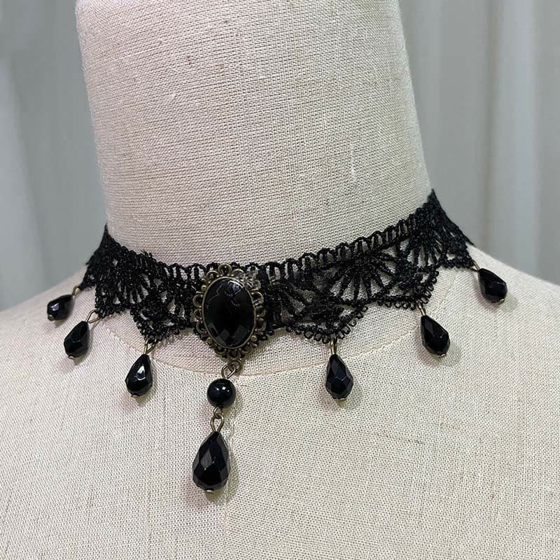 Collier ras du cou gothique punk rétro en dentelle et cristal Lolita