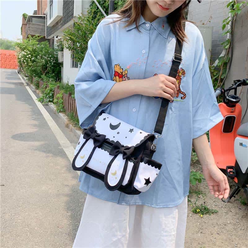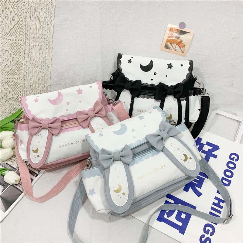 Sac à bandoulière avec nœud et oreilles de lapin à imprimé lune et étoiles
