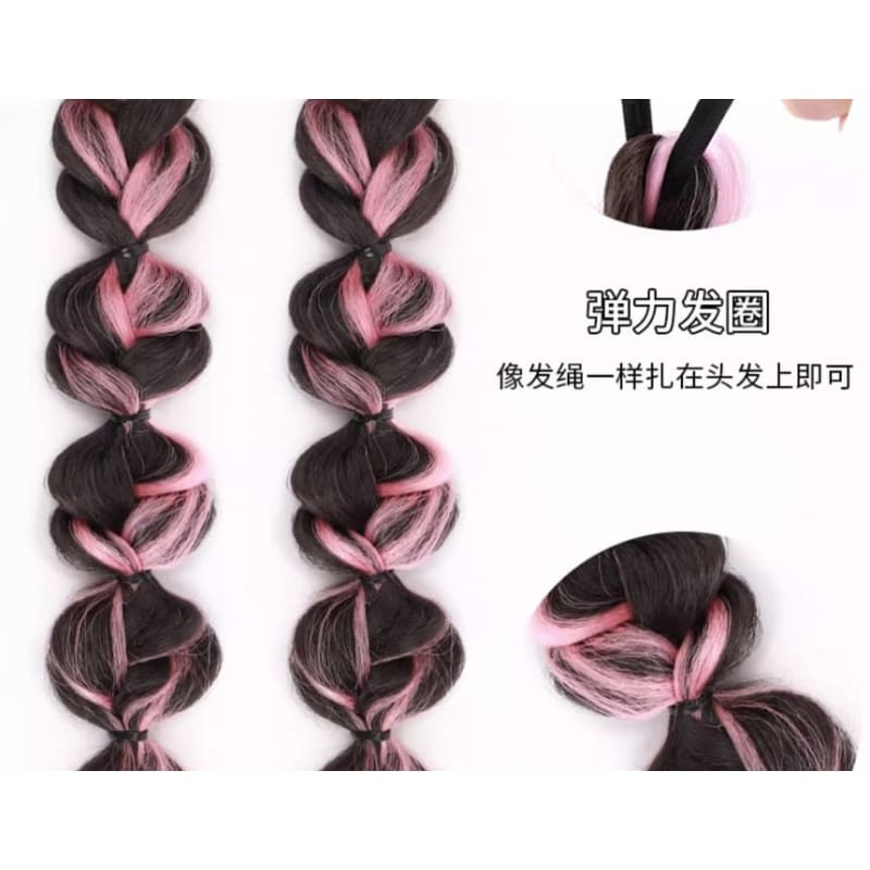 Highlights Braided Ponytail Wig - 1 Piece - Sakura Pink