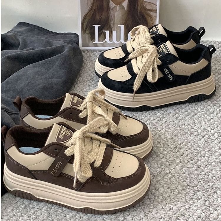 Two Tone Lettering Platform Sneakers