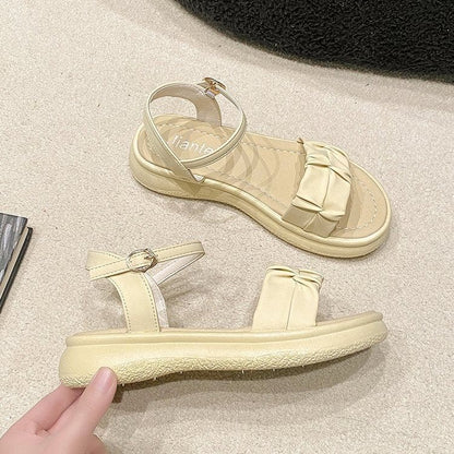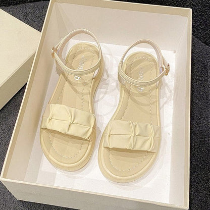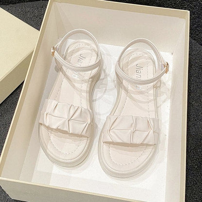 Ankle Strap Ruched Sandals - Off-White / 35 - shoes