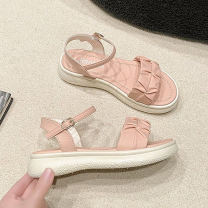 Ankle Strap Ruched Sandals - Pink / 35 - shoes