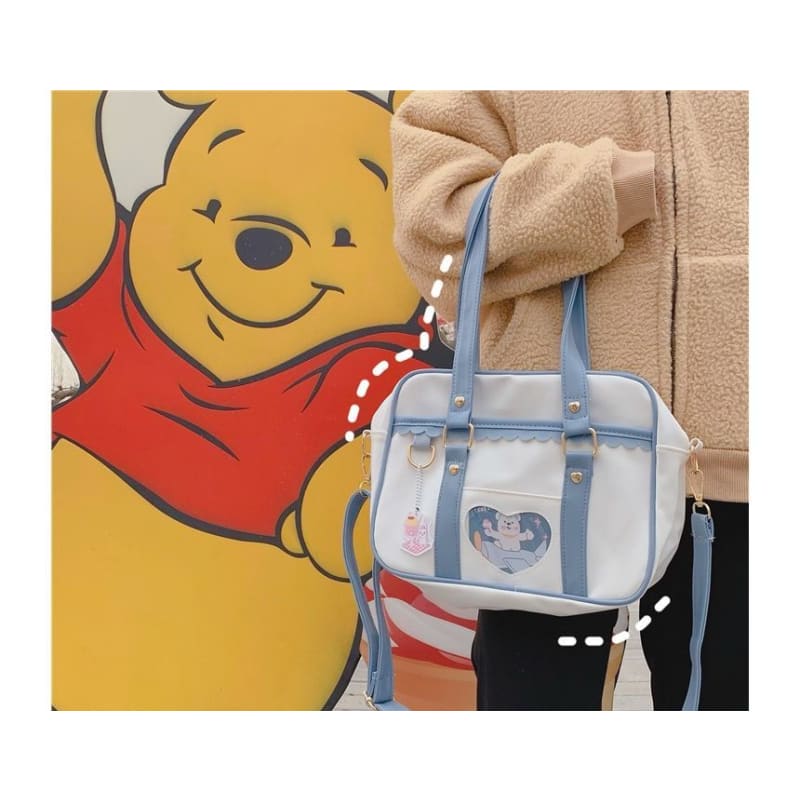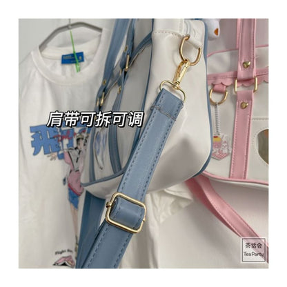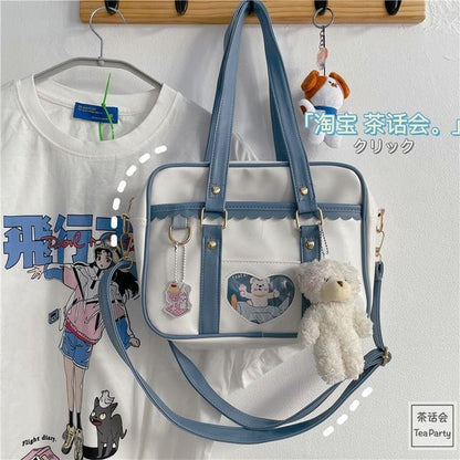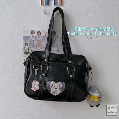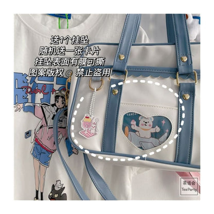 Cartoon Print Faux Leather Tote Bag / Bag Charm / Set