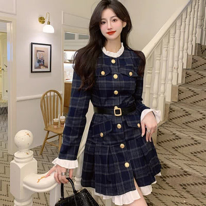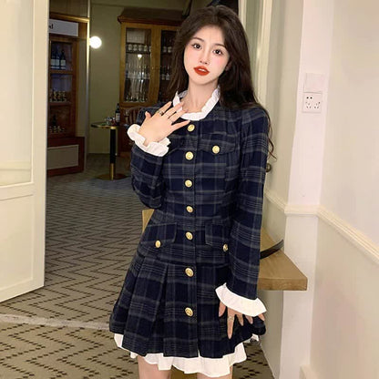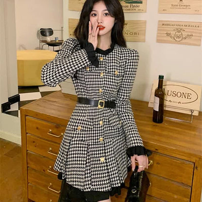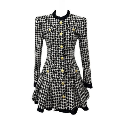 Chic Elegant Print Long Sleeve Pleated Dress