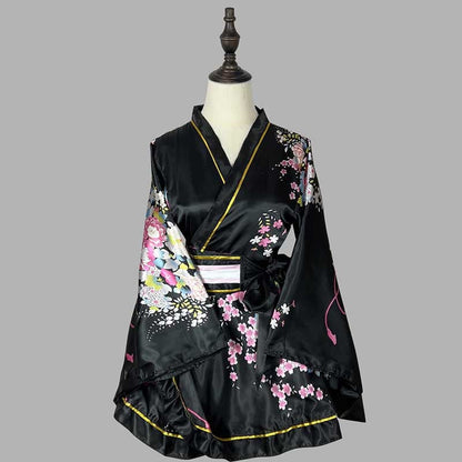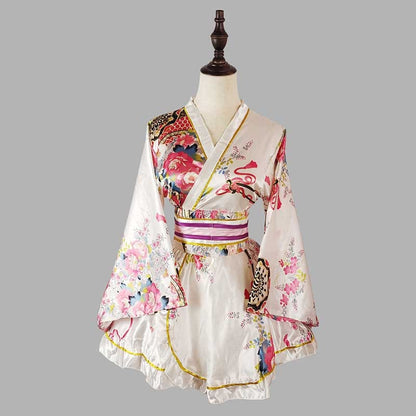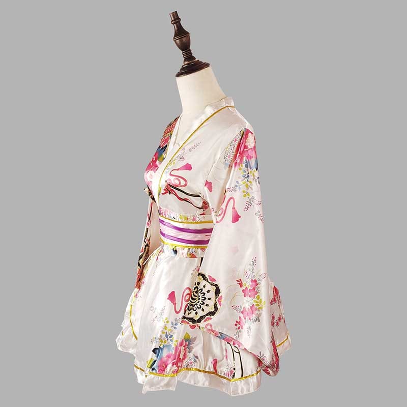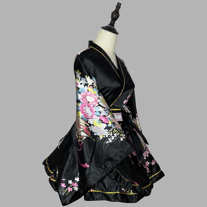Cosplay Retro Flower Print V-neck Kimono Costume