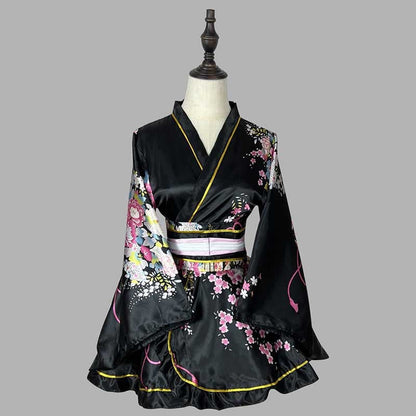 Transform into a graceful beauty with our elegant Cosplay Retro Flower Print V-neck Kimono Costume. Stand out at any event with this stylish and feminine ensemble, perfect for cosplay or any occasion. Its retro flower print and v-neck design will surely make you the center of attention.