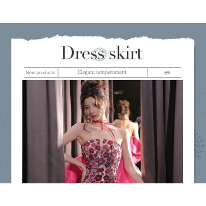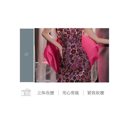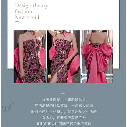Floral Sequin Bow Back Trained Slit Mermaid Tube Evening