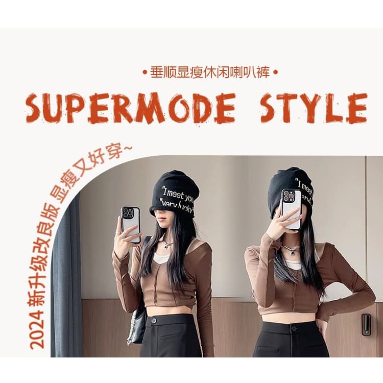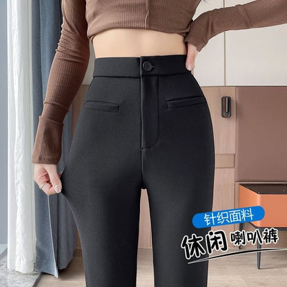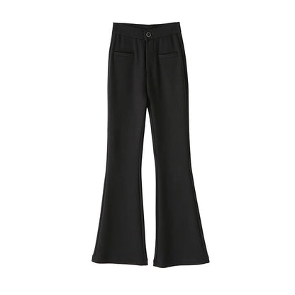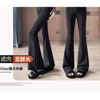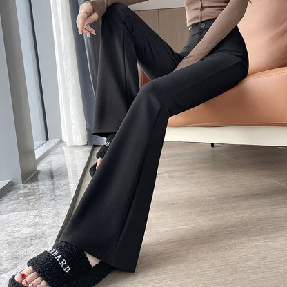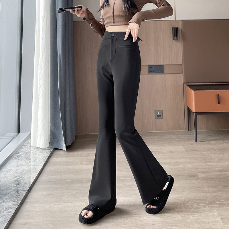 High Rise Plain Flared Dress Pants - Normal Edition - Black