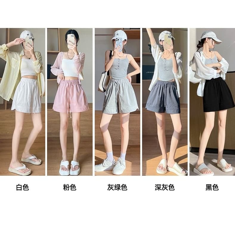 High Rise Plain Wide Leg Sweatshorts - Pink / S