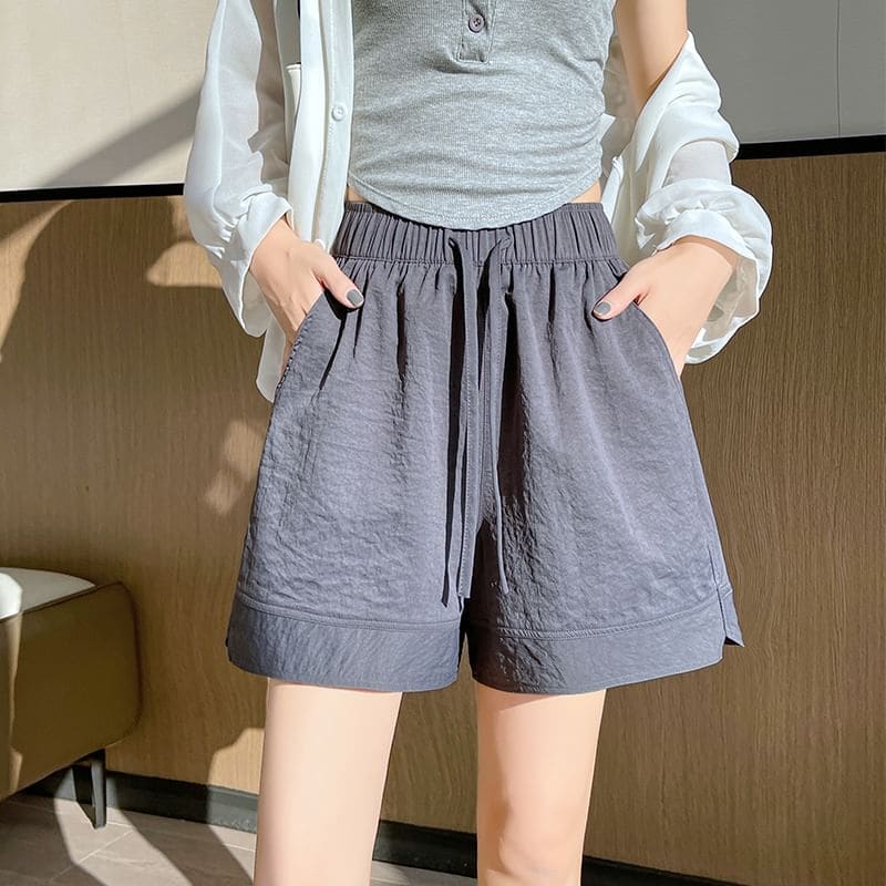 High Rise Plain Wide Leg Sweatshorts - Dark Gray / S
