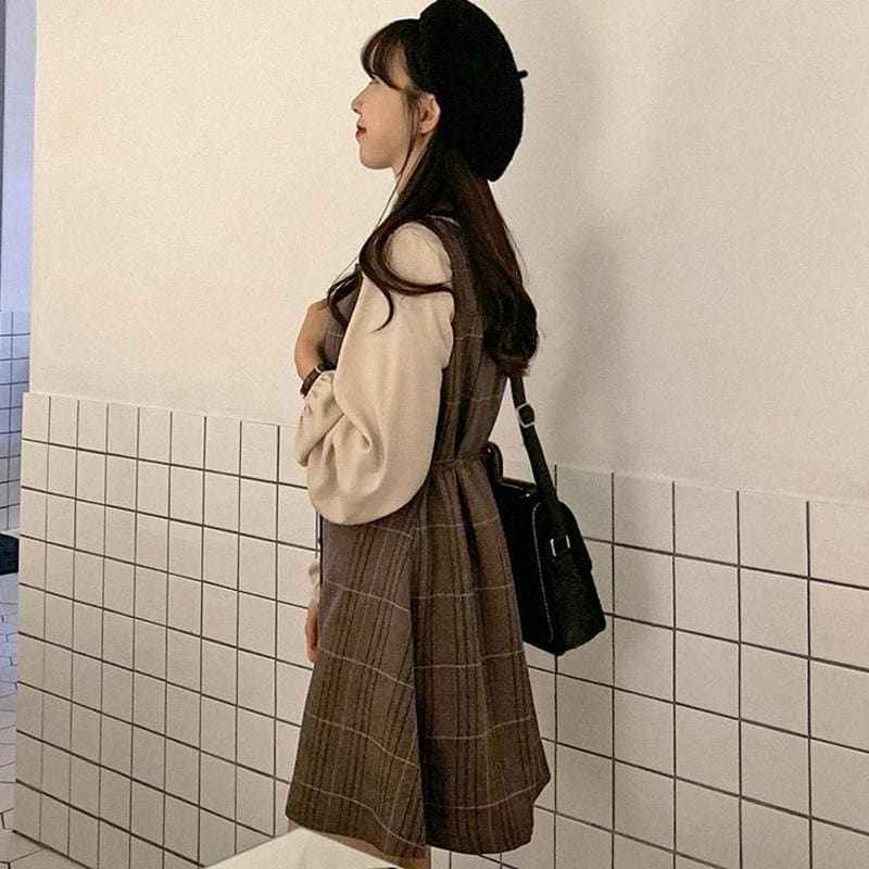 Material: CottonMaterial: AssortedSilhouette: A-LINEAge: Ages 16-28 Years OldNeckline: Square CollarSleeve Length(cm): SleevelessDecoration: BowStyle: Japan StyleWaistline: empirePattern Type: PlaidDresses Length: Above Knee, Mini