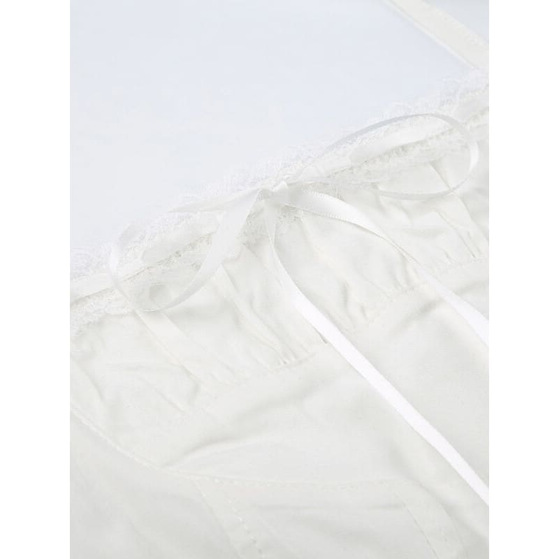 Indulge in a touch of elegance with our Lace White Halter Top. Made with delicate lace, this halter top will add a touch of kawaii charm to your wardrobe. Perfect for dressing up any outfit, it's a must-have for any fashionable and feminine look.