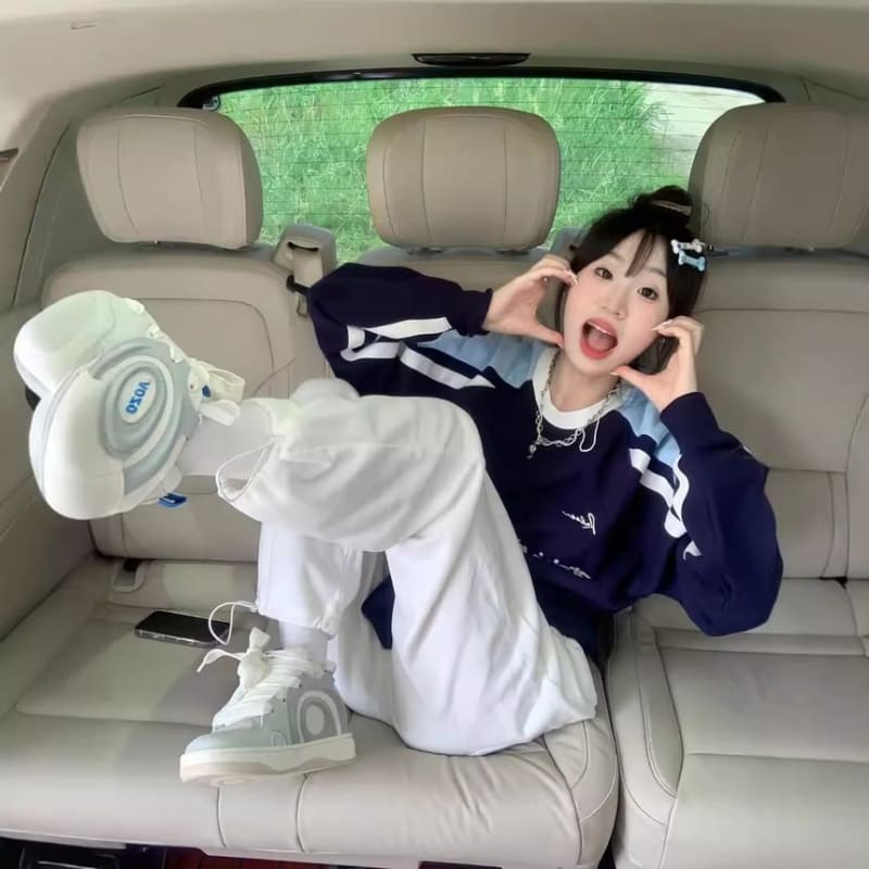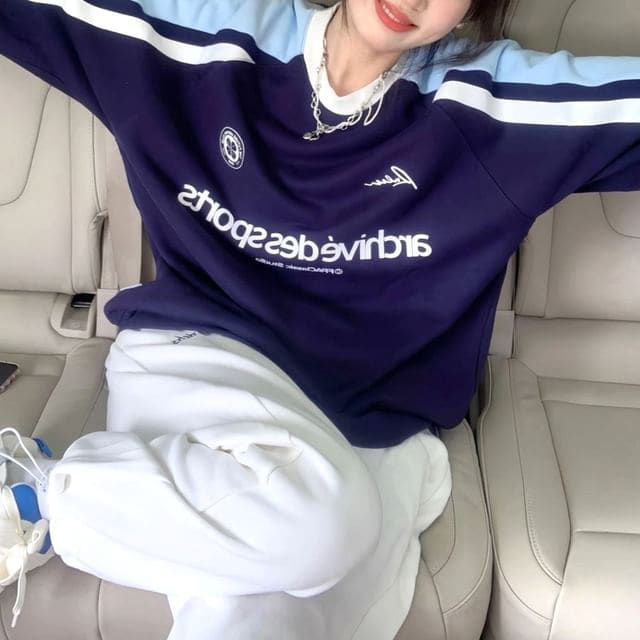 Long-Sleeve Crew Neck Lettering Raglan Sweatshirt - Blue / M
