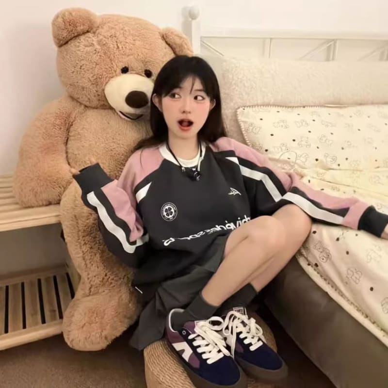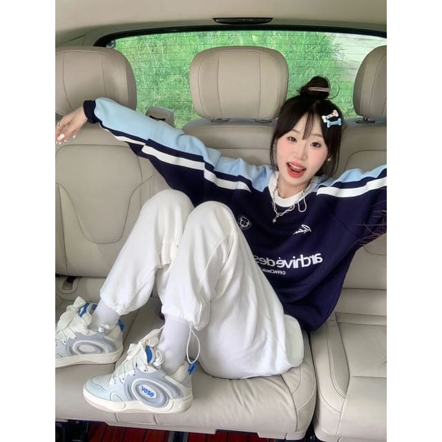 Long-Sleeve Crew Neck Lettering Raglan Sweatshirt