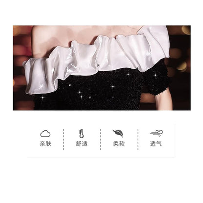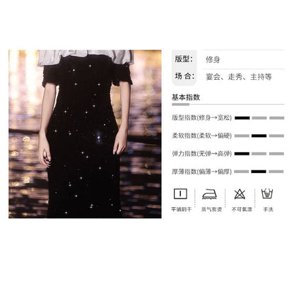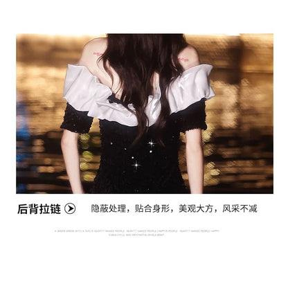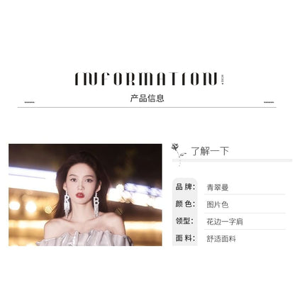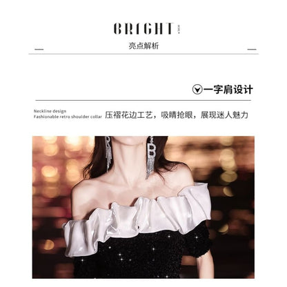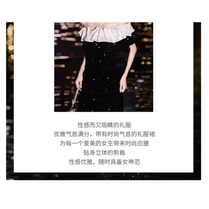 Off-Shoulder Rhinestone Ruffled Mermaid Evening Gown