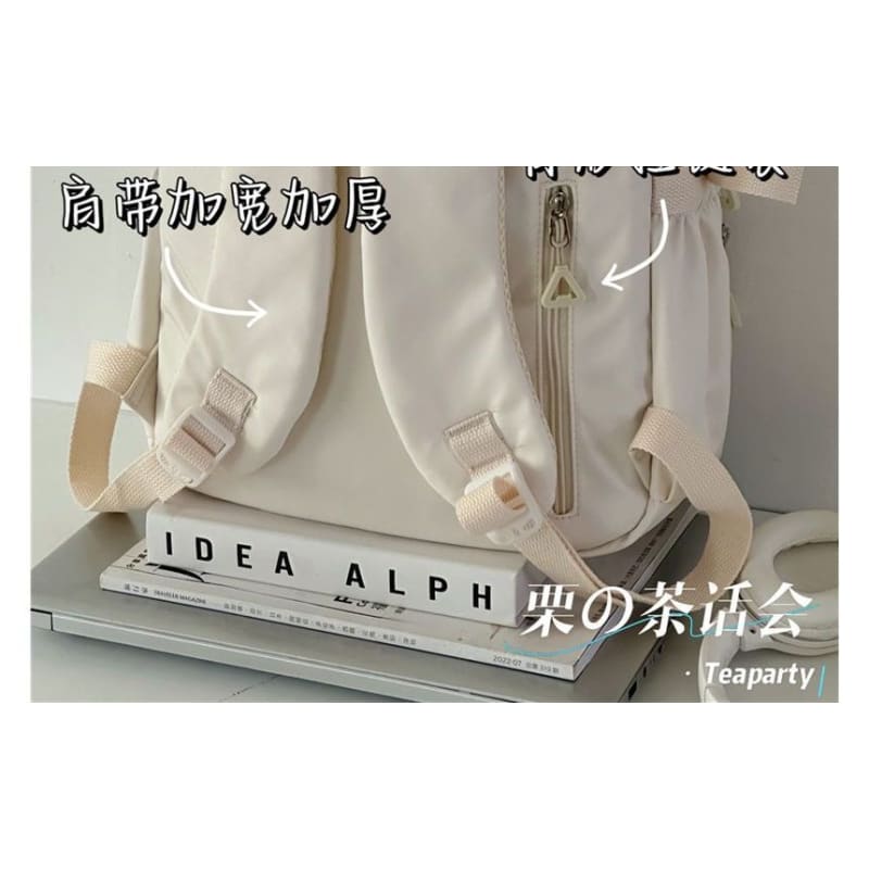 Plain Lettering Logo Buckled Backpack - With Sandwich Toast