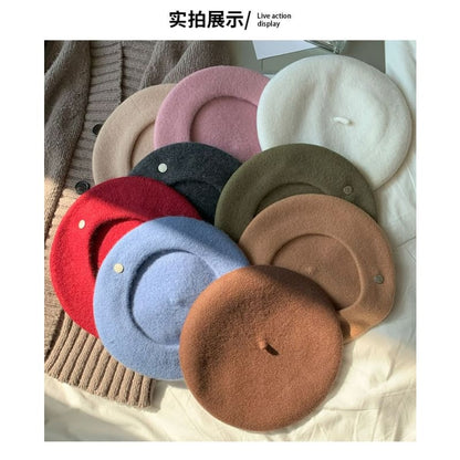 Plain Metal Accent Beret - Light Blue / M - Hats