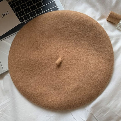 Plain Metal Accent Beret - Light Brown / M - Hats