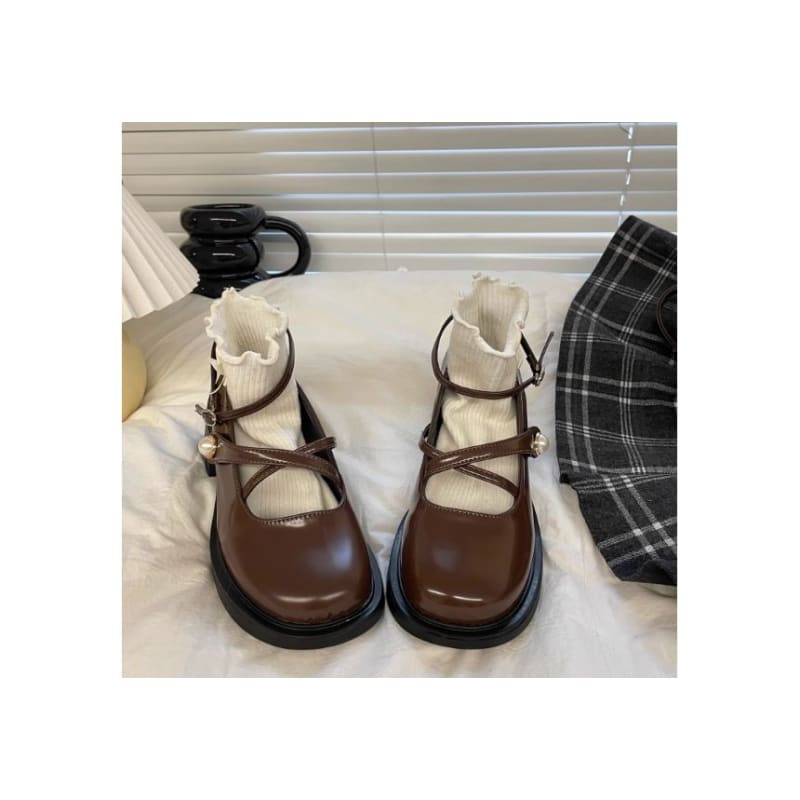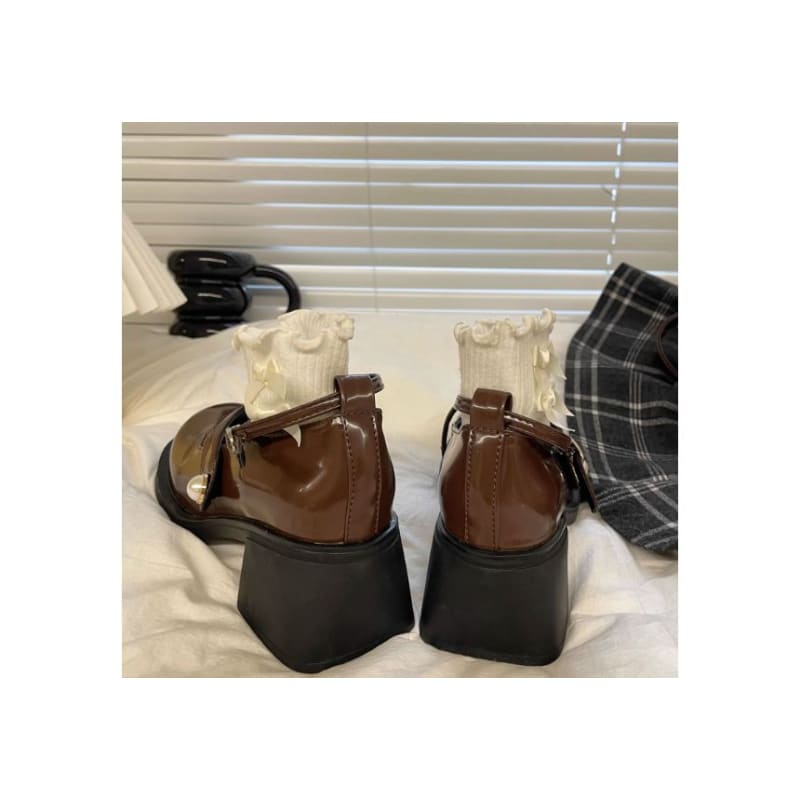 Platform Ankle Strap Mary Jane Pumps - Brown / 35