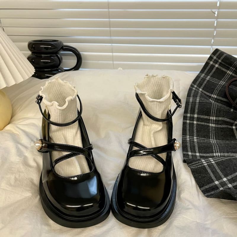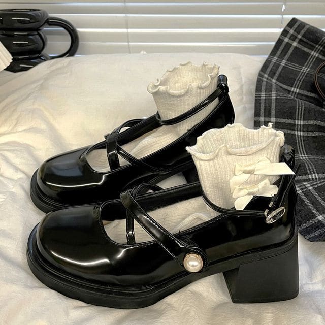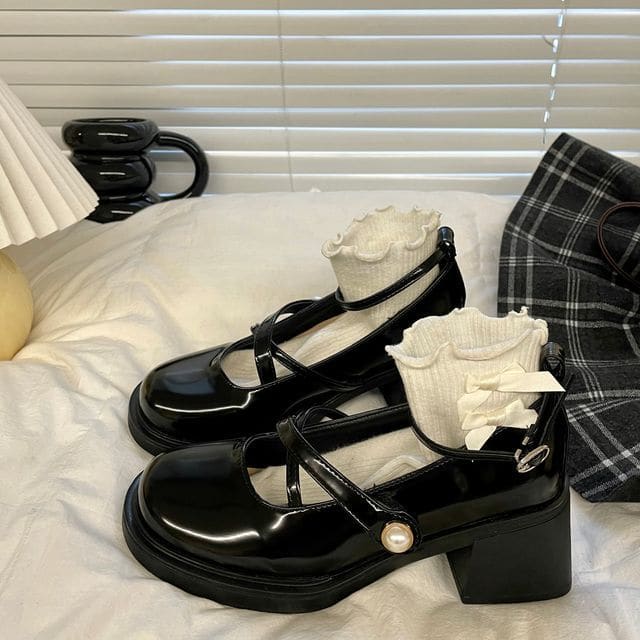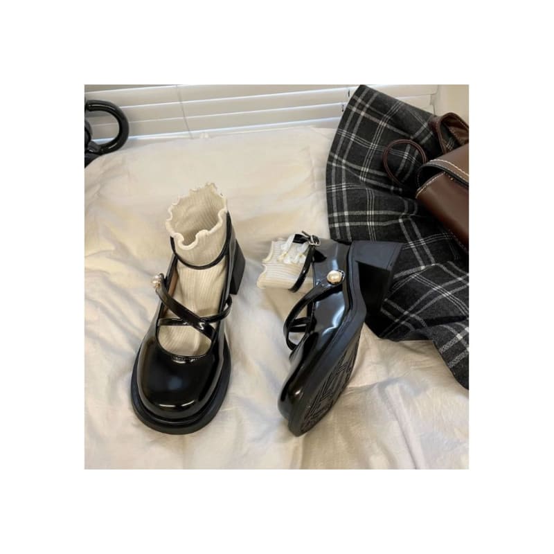 Platform Ankle Strap Mary Jane Pumps - Black / 35