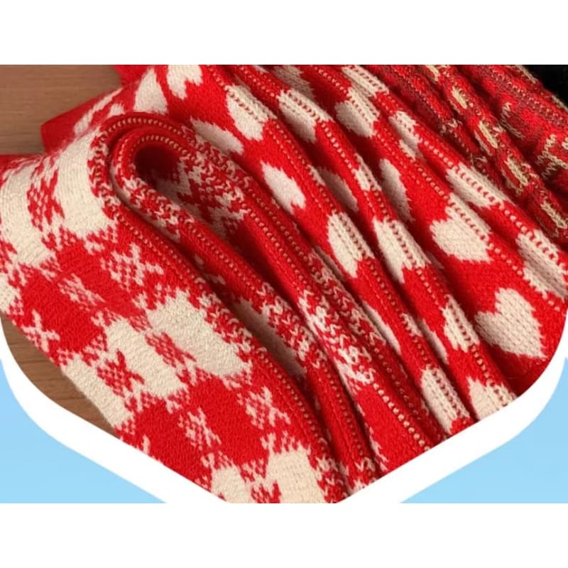 Printed Socks / Set - Type 12 - 1 Pair - Heart - Red
