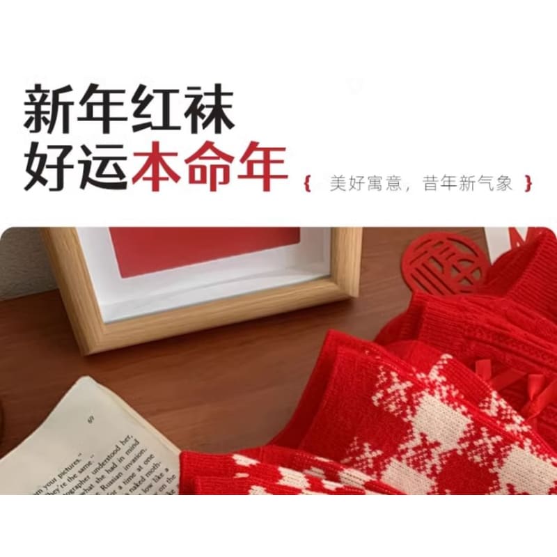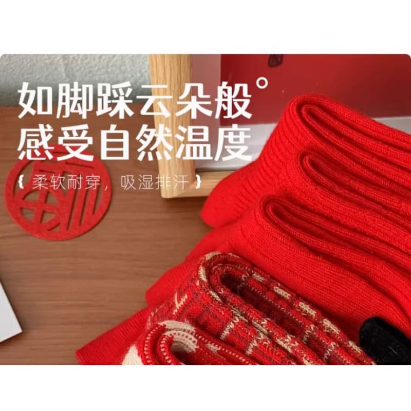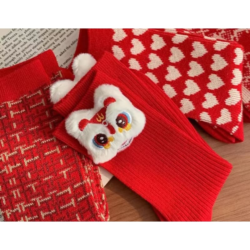 Printed Socks / Set - Type 14 - 1 Pair - Lion Dance - Red