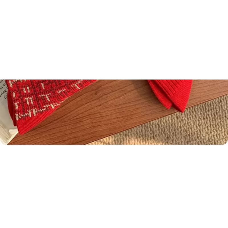 Printed Socks / Set - Type 13 - 1 Pair - Red Ribbon - Red