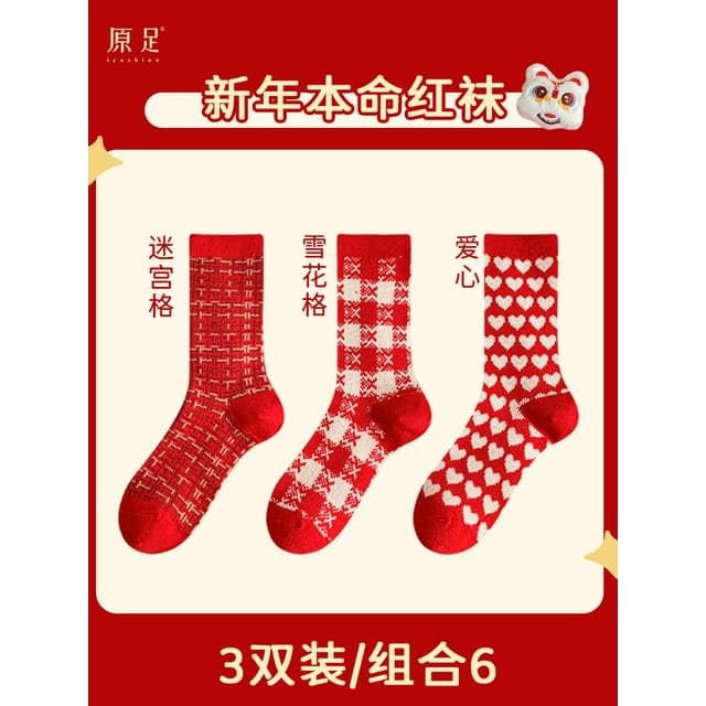Color: Type 9 - Set of 3 Pairs - Heart & Plaid & Lion Dance - Red