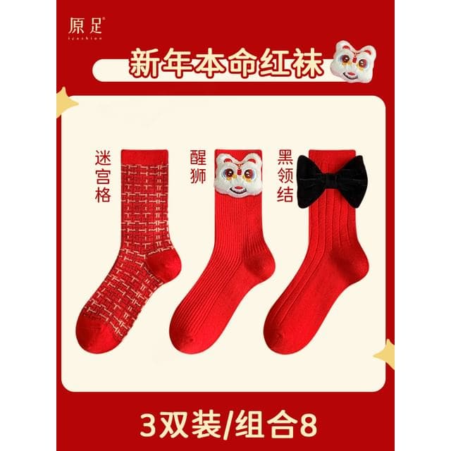 Printed Socks / Set - Type 7 - Set of 3 Pairs - Red Ribbon