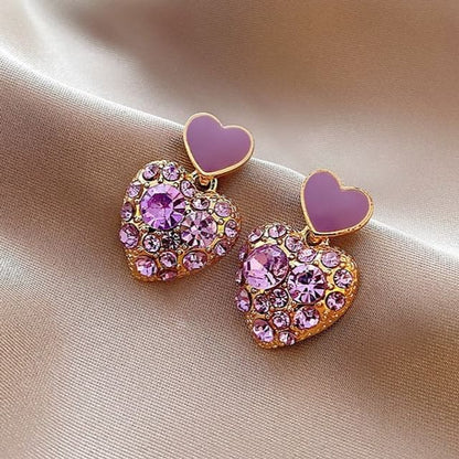 Rhinestone Alloy Drop Earring - 1 Pair - Square - Purple
