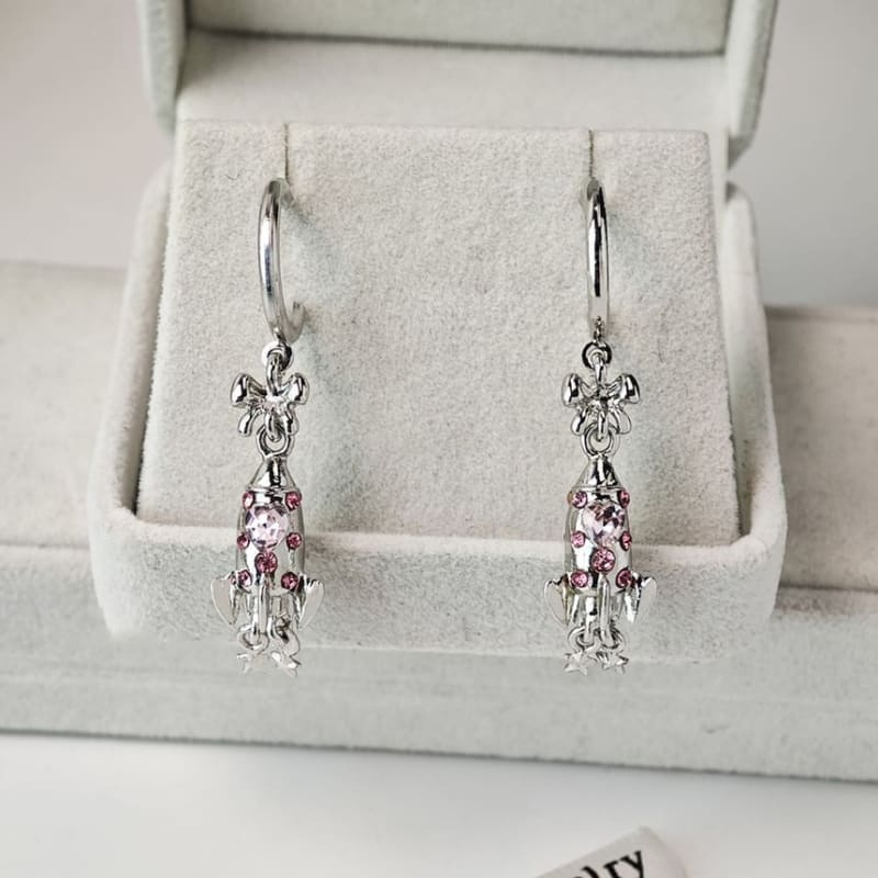 Rhinestone Rocket Hoop Drop Earring - jewelry