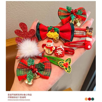 Set of 10: Christmas Cartoon Hair Clip / Hair Tie