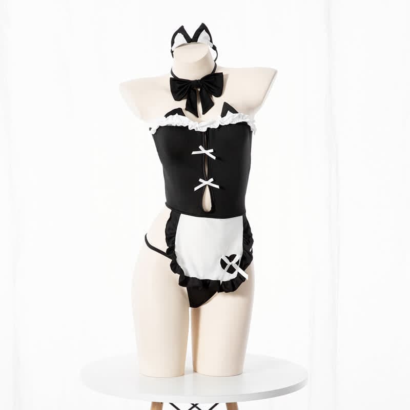 Sexy Cat Girl Backless Maid Uniform Lingerie Dress