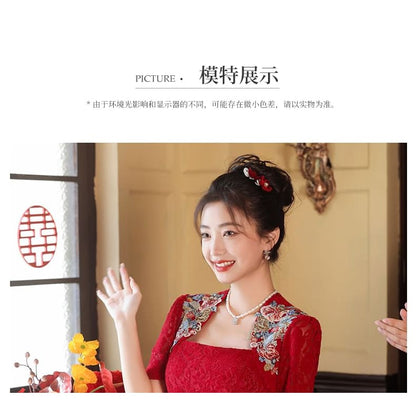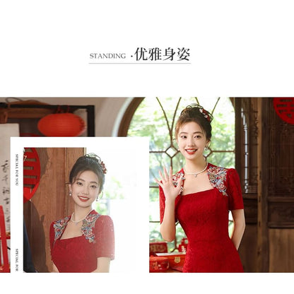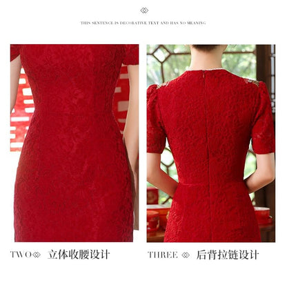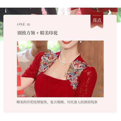 Short-Sleeve Square-Neck Floral Embroidered Lace Bodycon Evening Gown