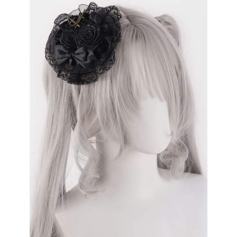Swords Black Rosettes Lace Hairclip - Black / Free Size